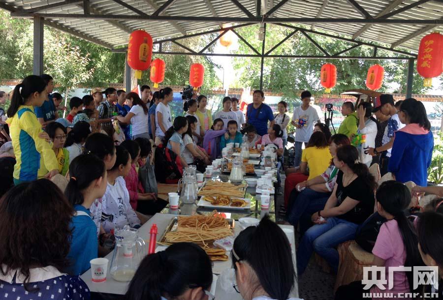 這種場面的熱鬧還吸引了許多其他小區(qū)的居民,世紀園清真寺阿訇吾買爾也早早趕到,看到這么多居民歡聚在這里,他認真為大家講述了“去極端化”宣教故事,品嘗了暈素搭配、涼熱味美的百家晏,吾買爾說:“多少年來沒見過這種場面,非常新鮮,我們伊斯蘭教也倡導(dǎo)鄰里之間互相和睦、做好吃的互相贈送,跟這個風格是一模一樣的,可以拉動鄰里之間的關(guān)系、和諧。”