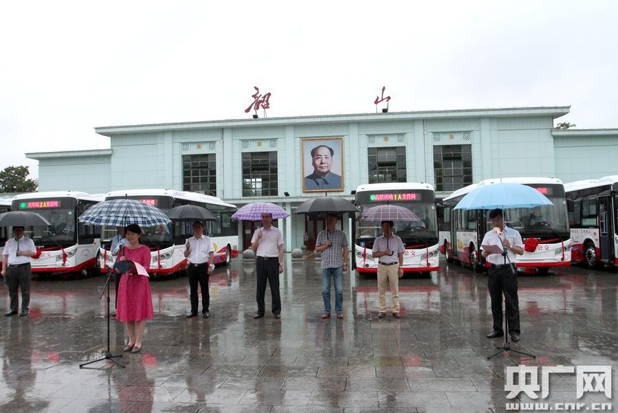 6月8日,韶山迎來全省首條純電動(dòng)城鄉(xiāng)公交線路1、2路的正式開通運(yùn)營,圖為開通儀式現(xiàn)場(央廣網(wǎng)發(fā) 賀湘云 攝)