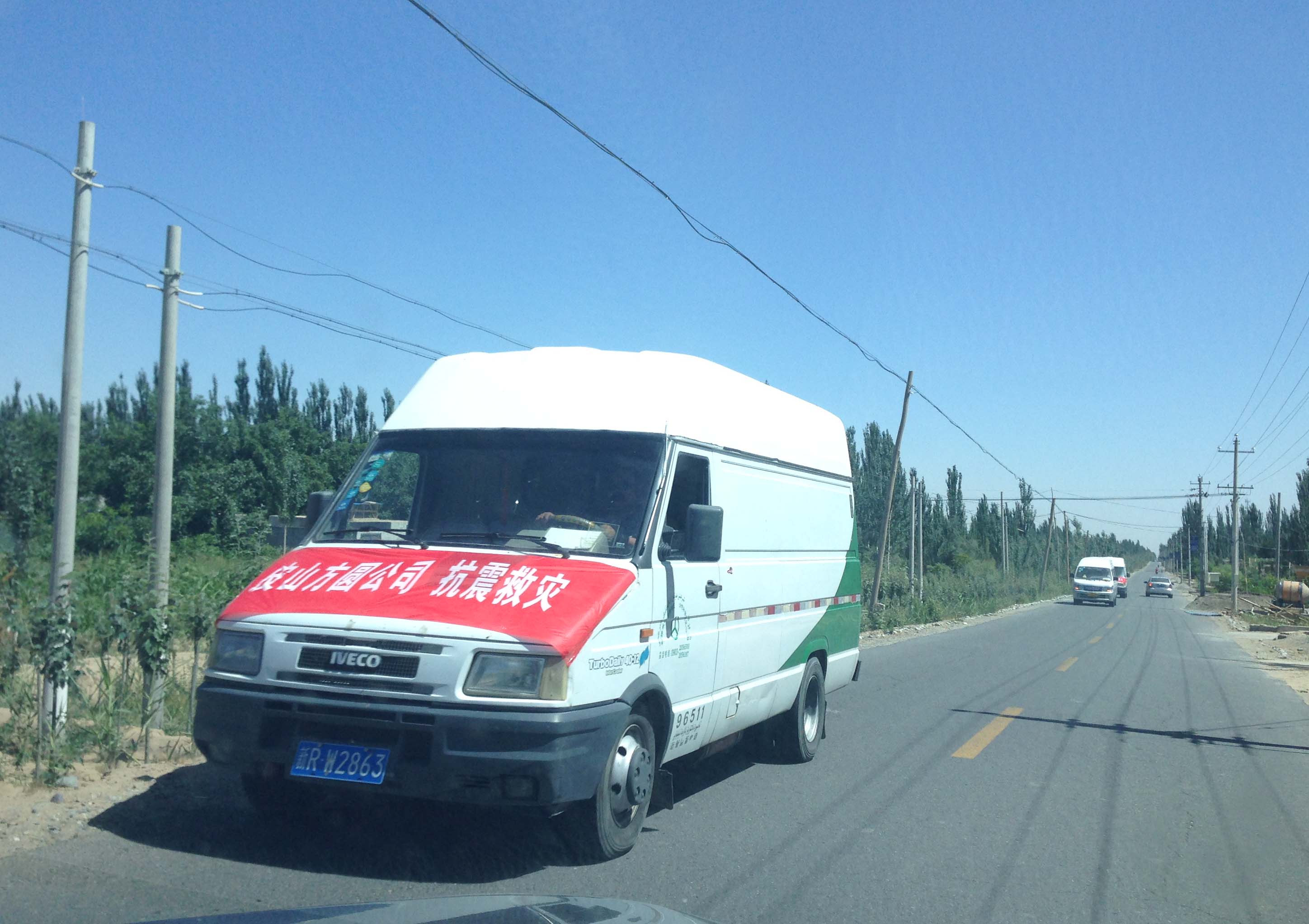在皮山縣鄉(xiāng)村多見救災物資運輸車輛