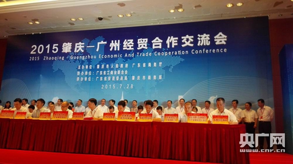 央廣網(wǎng)廣州7月28日消息(記者傅曉勤 通訊員段建新)今天(28日)下午,由肇慶市政府和廣東省商務廳聯(lián)合主辦的“2015肇慶—廣州經貿合作交流會”在廣州舉行,會上共簽約投資項目25宗,總投資金額157.43億元。