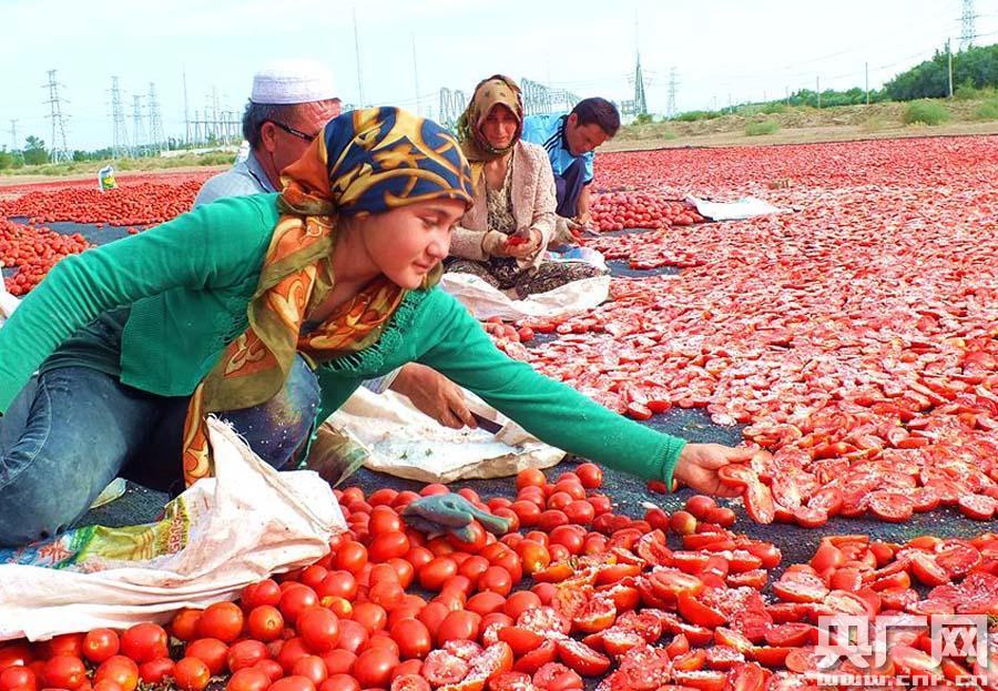 焉耆縣的番茄干品色素含量高,口感好,深受國(guó)內(nèi)外客商的喜愛(ài),番茄干通過(guò)口岸遠(yuǎn)銷到巴基斯坦、哈薩克斯坦等中亞國(guó)家,也有少部分銷往南疆各地。近幾年不少農(nóng)民為增加收入種植的工業(yè)番茄除了供應(yīng)當(dāng)?shù)蒯u廠外,還與客商簽有訂單,番茄晾曬成干品后,可使每畝效益達(dá)到5000元以上。