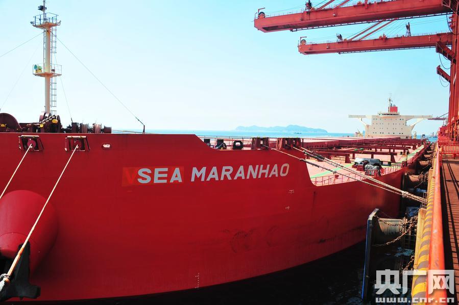 40萬噸“海上巨無霸”滿載靠泊大連港 接卸超大型鐵礦石船成為新常態(tài)(于海青攝)
