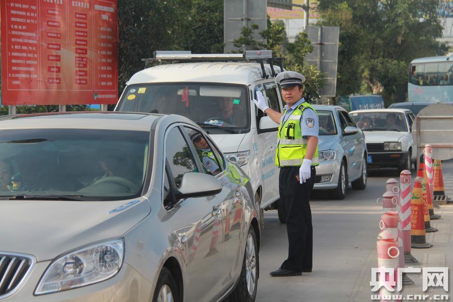 國慶假期期間交警在進行交通梳理及道路保通工作