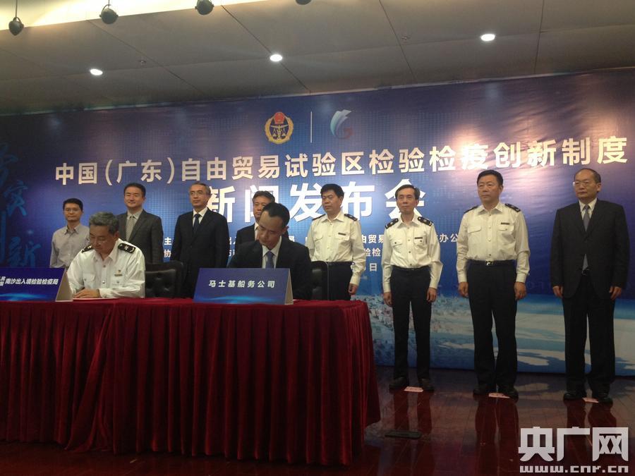 央廣網(wǎng)廣州11月5日消息(記者何偉奇 通訊員岳儉宣)廣東出入境檢驗(yàn)檢疫局與廣東省自貿(mào)辦今天在廣州南沙港聯(lián)合召開自貿(mào)區(qū)檢驗(yàn)檢疫創(chuàng)新制度新聞發(fā)布會,發(fā)布支持廣東自貿(mào)區(qū)發(fā)展的11項(xiàng)檢驗(yàn)檢疫創(chuàng)新制度。
