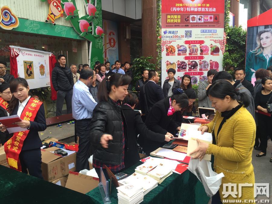 央廣網(wǎng)廈門1月5日消息(記者 馬寧)2016年是農(nóng)歷丙申猴年,喜歡集郵的朋友一定知道猴年對于集郵界的特殊意義,36年前,我國工藝美術大師黃永玉創(chuàng)造了生肖郵票的一個奇跡,當時票面僅為8分錢一枚的金猴郵票在幾十年間價格不斷上漲,目前已經(jīng)漲到大約1萬2千元左右。時隔3個輪回,今年已經(jīng)92歲高齡的黃永玉再次執(zhí)筆,為即將到來的丙申猴年再度設計了一套猴票,今天這套猴票在全國各大城市發(fā)布,廈門郵政今天總共在市區(qū)四個點設立了發(fā)售現(xiàn)場,方便市民購買。