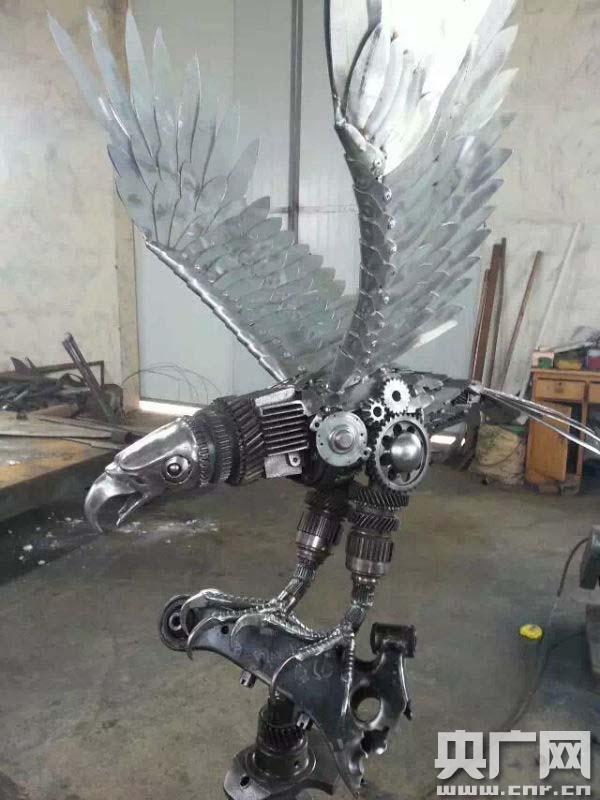 眼下,喜迎十三冬,除了微雕,三兄弟還趕制了一只鐵雕鷹。為了達(dá)到最佳效果,三兄弟來(lái)回拆了不下十次。陳海軍說(shuō):“你看腿呀,還有這個(gè)尾巴后面,就是挑各種齒輪,組合起來(lái),這沒有圖紙,然后就是看著零件,零件大概大小呀,形狀呀,就是適合這個(gè)鷹的,放在哪個(gè)部位,這個(gè)翅膀做了三天吧,羽毛總共大概有200片了吧!
