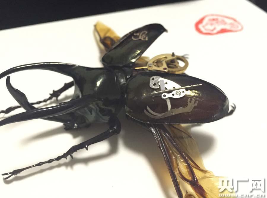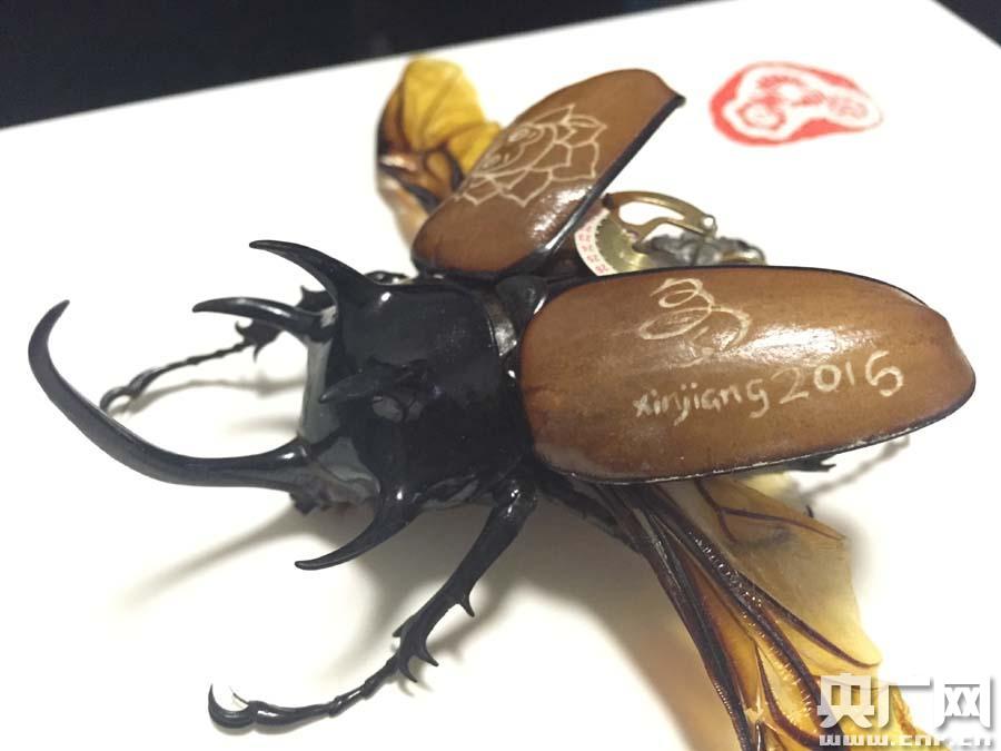 馬馳使用的蟲子標(biāo)本是來(lái)自泰國(guó)的兜蟲,就是咱平常熟悉的金龜子。由于翅膀上有一層蠟質(zhì)油跡,不僅表面光滑,字墨也難以沁入。他說(shuō):“它在轉(zhuǎn)動(dòng)起來(lái)的時(shí)候,特別容易滑動(dòng)到其他的位置,所以手一定要特別的穩(wěn)!
