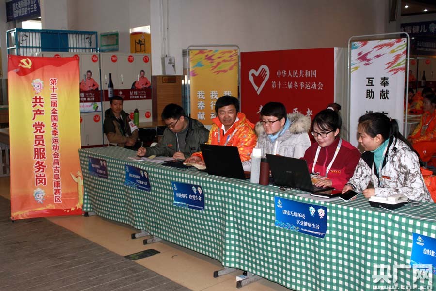 央廣網(wǎng)阜康1月30日消息(記者張雷 阜康臺記者王新剛 郭剛)在第十三屆全國冬季運(yùn)動會新疆阜康賽區(qū)天山天池國際滑雪場,人們隨處都能見到胸前佩戴共產(chǎn)黨員“先鋒崗”標(biāo)示的500多名黨員在為“十三冬”服務(wù)忙碌的身影。