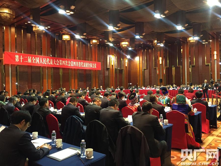 央廣網(wǎng)北京3月8日消息(記者韓民權(quán))8日上午,第十二屆全國人民代表大會第四次會議四川省代表團(tuán)全體會議在北京國際飯店舉行,繼續(xù)審議政府工作報(bào)告,同時(shí)審查計(jì)劃報(bào)告、預(yù)算報(bào)告。會議向媒體開放,代表們現(xiàn)場回答了國內(nèi)外記者的提問。