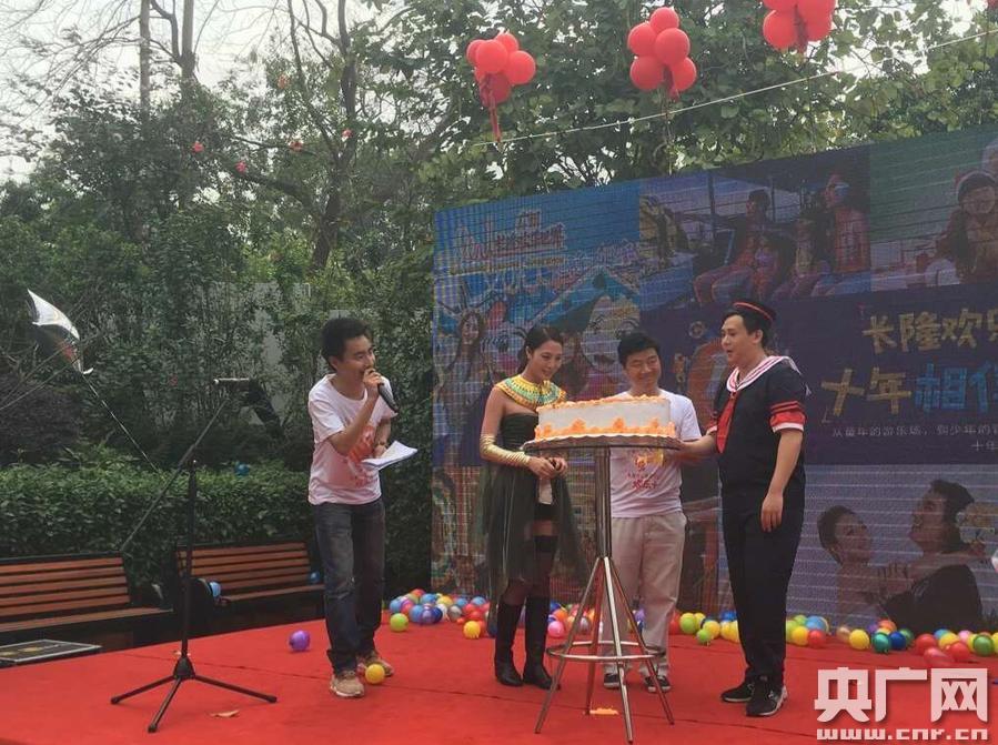圖1:長隆歡樂世界總經(jīng)理蔣敏靈與粉絲代表為十年華誕切蛋糕,攝影 汪婷