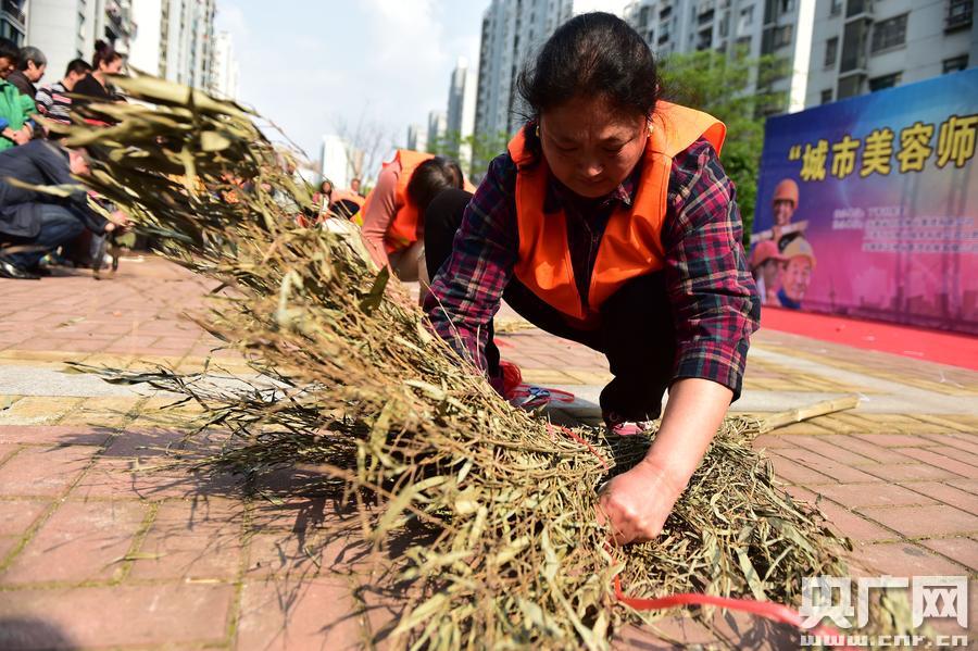 央廣網合肥4月29日消息(記者劉軍)在五一國際勞動節(jié)來臨之際,合肥市蜀山區(qū)南七街道丁香社區(qū)開展了社區(qū)首屆環(huán)衛(wèi)工人趣味技能大賽。來自社區(qū)的12名環(huán)衛(wèi)選手參加了“編笤帚”、“夾乒乓球”、“拖垃圾桶”、“掃紙屑”等競賽項目,由社區(qū)居民評分,社區(qū)為最終獲勝的環(huán)衛(wèi)工人頒獎表彰。丁香社區(qū)黨委書記凌睿介紹說,環(huán)衛(wèi)工人是城市的無名英雄,給大家?guī)頋崈艉颓逅。通過技能競賽與關愛環(huán)衛(wèi)工人相結合,社區(qū)希望表達對一線環(huán)衛(wèi)工人的敬意,并送去一份真切的關愛。