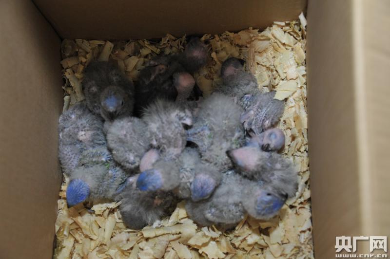廈門海關(guān)查獲的剛被孵化成幼鳥的鸚鵡(央廣網(wǎng)發(fā) 黃穎攝)