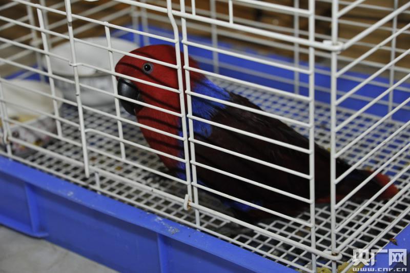廈門海關(guān)查獲的鸚鵡(央廣網(wǎng)發(fā) 黃穎攝)