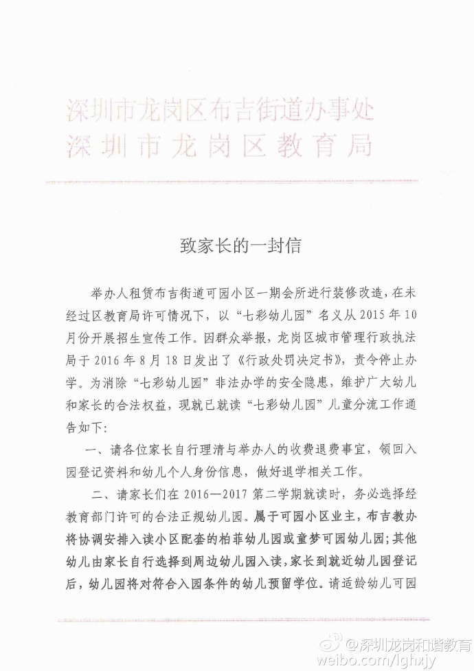 今天記者通過“深圳龍崗和諧教育”的微博看到了深圳龍崗教育局2月16日發(fā)出的情況通報: