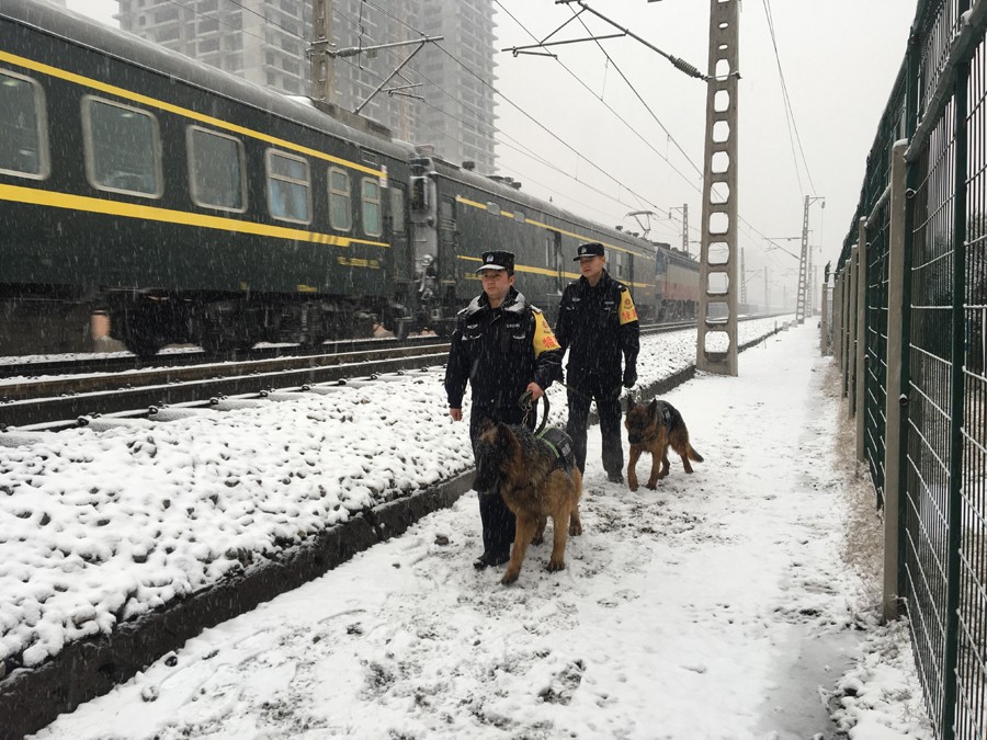 央廣網(wǎng)西安2月21日消息(記者雷愷 通訊員吳活潑 余琦)一場(chǎng)遍布大半個(gè)中國的大風(fēng)降溫天氣今天(2月21日)不期而至,陜西省內(nèi)各地普降中到大雪,給出行的人們帶來諸多不便。西安鐵警以雪為令,迅速啟動(dòng)雨雪天氣應(yīng)急預(yù)案,全力確保大雪天鐵路運(yùn)輸安全。