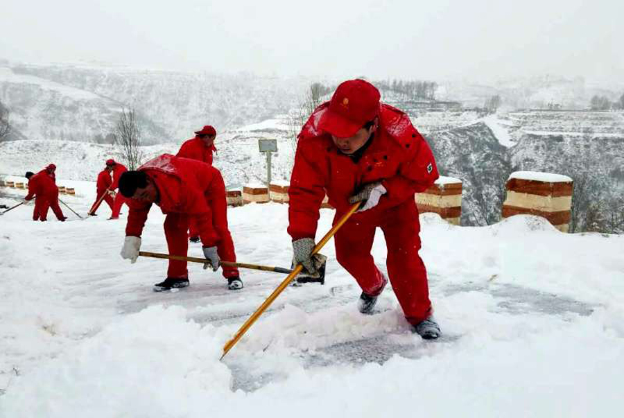 央廣網(wǎng)西安2月22日消息(記者雷愷 通訊員楊承欣)受新一輪寒潮和暴雪影響,長(zhǎng)慶采油四廠百里油區(qū)2月20日普降大雪,氣溫驟降10℃,局地降雪達(dá)12cm,導(dǎo)致近5000公里油區(qū)道路通行中斷,上百個(gè)依靠罐車?yán)偷钠h(yuǎn)井場(chǎng)庫位瀕臨負(fù)荷,原油拉運(yùn)、物資配送、巡線等各型生產(chǎn)保障車輛及難以出行,生產(chǎn)陸續(xù)告急。長(zhǎng)慶采油四廠全體動(dòng)員,積極應(yīng)對(duì)“斷崖式”降溫。
