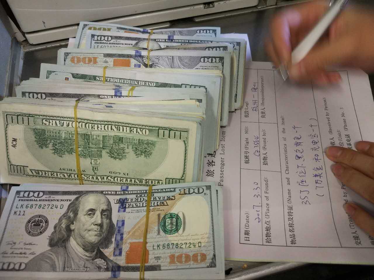 央廣網(wǎng)深圳3月31日消息(記者李強 通訊員孫海英 秦蓉 劉永濤)3月30日,南航CZ3564杭州飛深圳航班上,乘務(wù)組撿到7萬美金和30萬人民幣,共計80多萬現(xiàn)金,從撿到現(xiàn)金到歸還現(xiàn)金,只用了短短半小時時間,最終80萬現(xiàn)金完好無損交還給旅客。