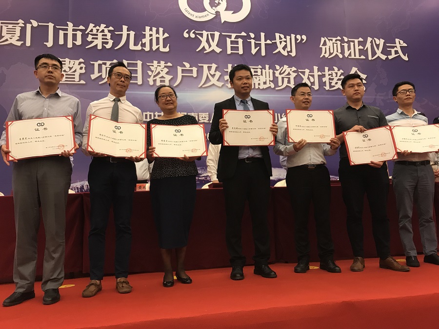 廈門市委常委、組織部部長、廈門市委人才工作領(lǐng)導(dǎo)小組副組長陳沈陽出席了當天的活動,并為第九批“雙百計劃”人才頒發(fā)證書。他表示,當前,廈門市正深入實施創(chuàng)新驅(qū)動戰(zhàn)略,加快建設(shè)國家創(chuàng)新型城市,推動經(jīng)濟結(jié)構(gòu)轉(zhuǎn)型升級。要實現(xiàn)這一目標,關(guān)鍵是要充分發(fā)揮人才對經(jīng)濟轉(zhuǎn)型升級的示范引領(lǐng)作用,大力發(fā)展新經(jīng)濟、培育新動能、增創(chuàng)新優(yōu)勢。