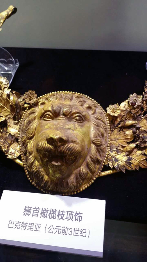 記者在展覽現(xiàn)場(chǎng)看到,古代埃及的描金立羊柄象形文字銀罐上雕刻著精美的象形紋,陜西省文物鑒定委員會(huì)主任劉云輝介紹,這類(lèi)古埃及的文物過(guò)去在國(guó)內(nèi)很少能看到,其上的象形紋與我國(guó)文物上的紋飾很類(lèi)似。巴克特里亞的六羊獅首柄嵌寶石金波羅、牛首橄欖枝嵌寶石金冠、獅首橄欖枝項(xiàng)飾,波斯早期的銀鎏金狩獵紋銀盤(pán)以及貴霜王朝、古印度、犍陀羅等絲路沿線的精美文物讓參觀者大飽眼福。