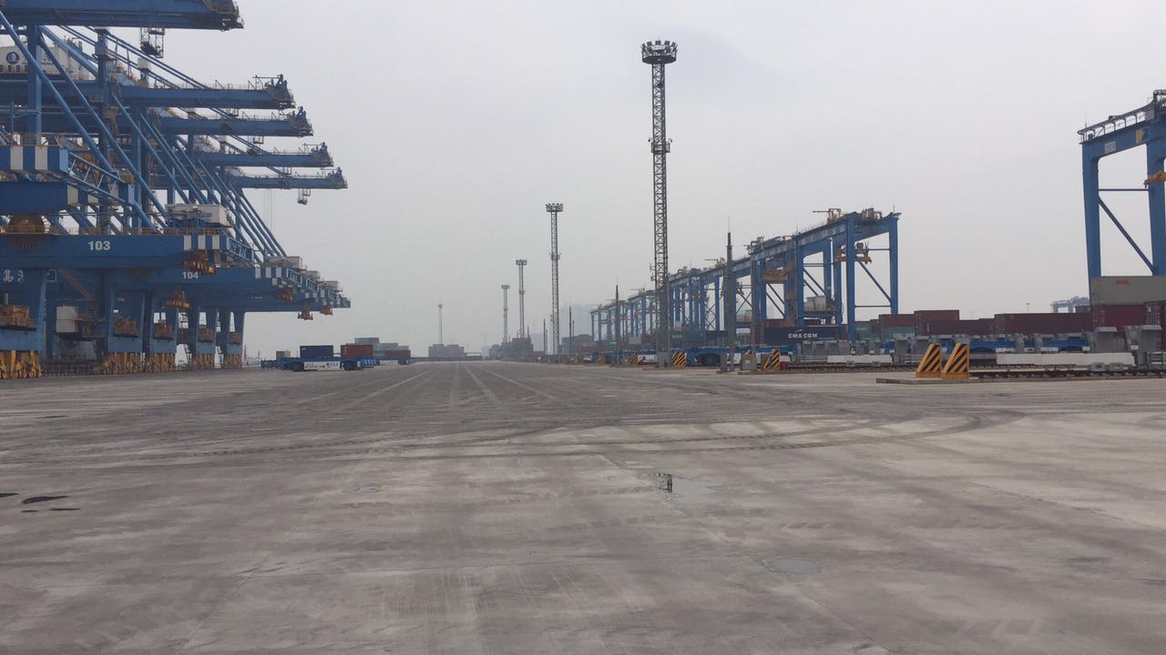 據(jù)介紹,該碼頭位于前灣港區(qū)四期5-10泊位,岸線長2088米,縱深784米,前沿水深-20米,年通過能力520萬TEU,可停靠世界最大的20000TEU以上的集裝箱船舶,首期2個泊位投入運營。