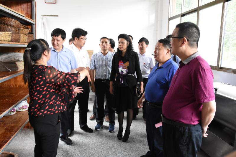 國(guó)務(wù)院扶貧辦規(guī)劃財(cái)務(wù)司巡視員任鐵民一行在遂川縣高坪鎮(zhèn)車下村調(diào)研籠藏米馃生產(chǎn)車間