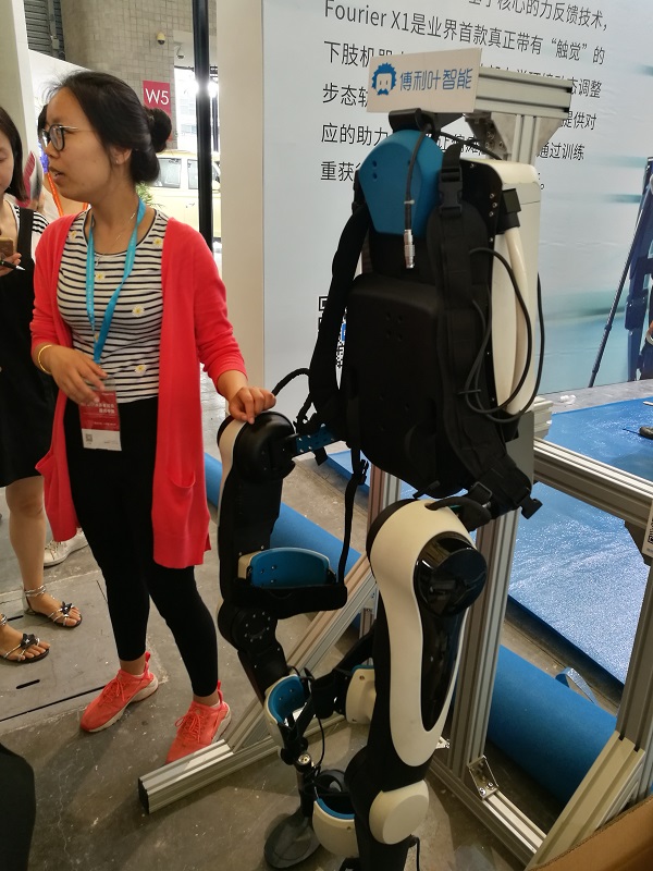 在展會(huì)現(xiàn)場(chǎng),一臺(tái)可穿戴機(jī)器人吸引了眾多記者的目光。據(jù)介紹,這臺(tái)可穿戴機(jī)器人學(xué)名外骨骼機(jī)器人,又稱動(dòng)力外骨骼系統(tǒng),是將機(jī)電一體化、生物力學(xué)、人體傳感網(wǎng)絡(luò)、步態(tài)分析等多領(lǐng)域科技融合而成的產(chǎn)物,可以讓下肢癱瘓者也能上下樓梯。它主要針對(duì)下半身癱瘓的患者,幫助他們實(shí)現(xiàn)坐、站、行走、上下樓梯等基本功能。