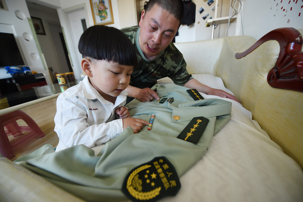 在他們租住的屋里,方成棟開心地和爸爸玩著拼圖。說起來隨軍,胡琳琳說,她承受了不少壓力、沖破了許多阻力,最終選擇了放棄工作到海島上來,為的是支持丈夫方雷舉。“可能我受他影響了,覺得有一種使命感。”胡琳琳笑著說,“方雷舉常說他是有命令在身的人!薄捌鋵,往大了一點說是奉獻,往小了說是為了孩子成長。孩子成長過程中沒有爸爸的陪伴,總感覺不完整!