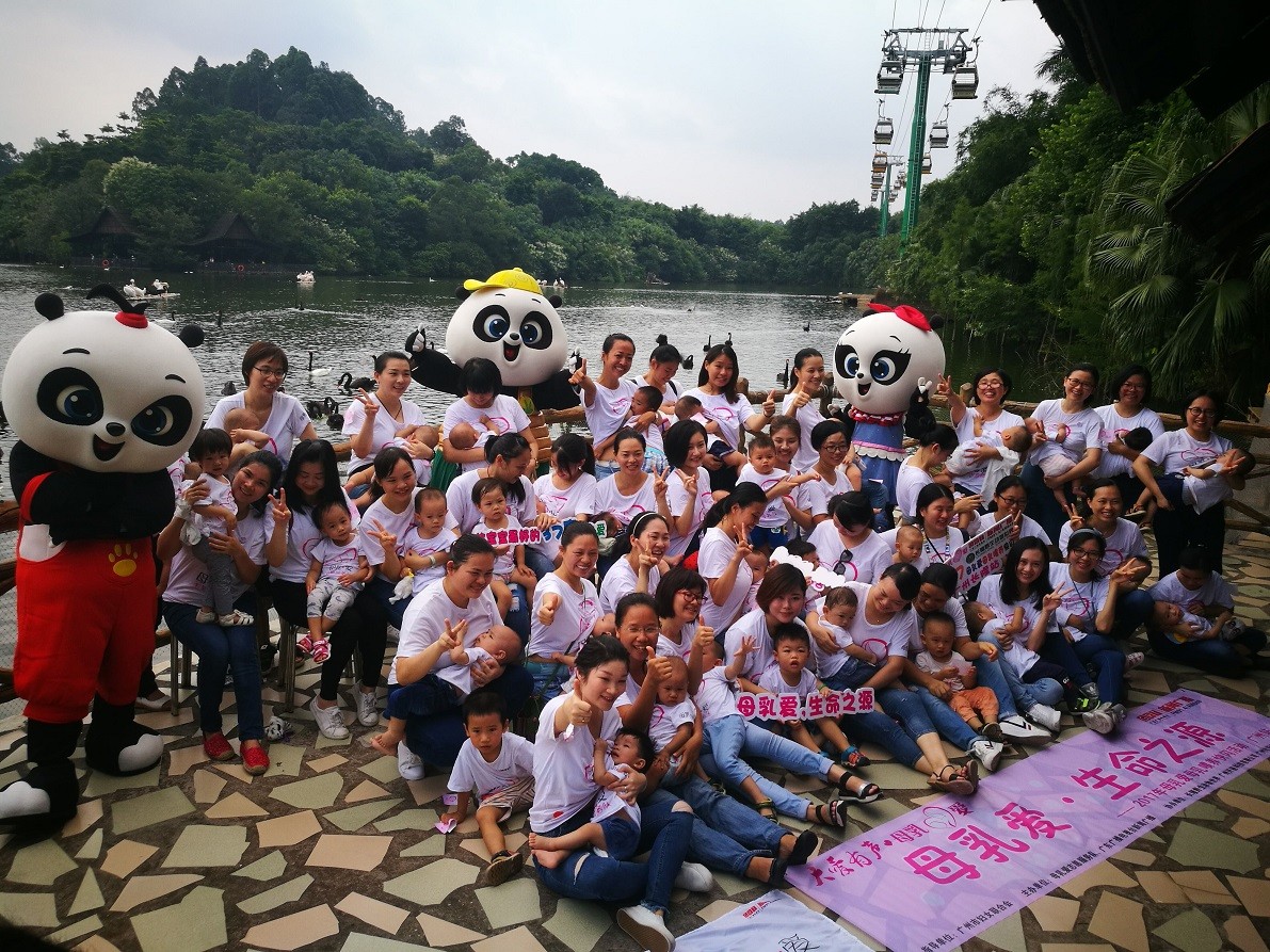 廣州母乳喂養(yǎng)快閃活動(dòng)在番禺長(zhǎng)隆野生動(dòng)物世界的天鵝湖邊舉行