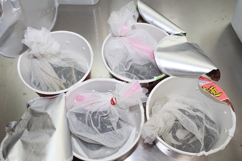 8月9日,當(dāng)該郵件通過CT機(jī)檢視時,顯示屏上出現(xiàn)螺旋狀盤狀物,與近期截獲的玉米錦蛇檢視圖極為相似。檢驗檢疫人員果斷下達(dá)下線查驗指令。開箱檢查發(fā)現(xiàn),內(nèi)寄物為多塊散裝面餅和4盒桶裝泡面。表面看似并無異常,然而,檢疫人員卻在桶裝泡面的包裝上發(fā)現(xiàn)了端倪,4盒桶裝泡面?zhèn)让嫱谟?-9個小孔,疑似活體動物的透氣孔。