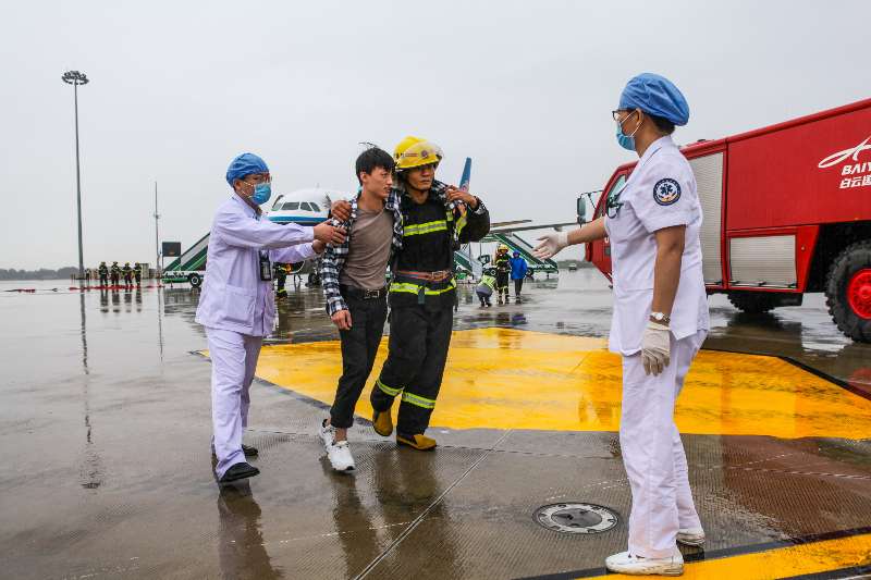 各應(yīng)急救援部門接到應(yīng)急救援指令后,以最快速度趕赴指定地點。很快,機組繼續(xù)通報飛機返航過程中駕駛艙內(nèi)出現(xiàn)右發(fā)火警警報,客艙被疑似發(fā)動機葉片的物體擊穿,造成多名旅客受傷。白云機場立即升級為Ⅱ級應(yīng)急響應(yīng),消防、急救、公安、飛管部馬上增派救援力量,南航、安檢、地勤等其他保障單位也立即趕赴集結(jié)現(xiàn)場。