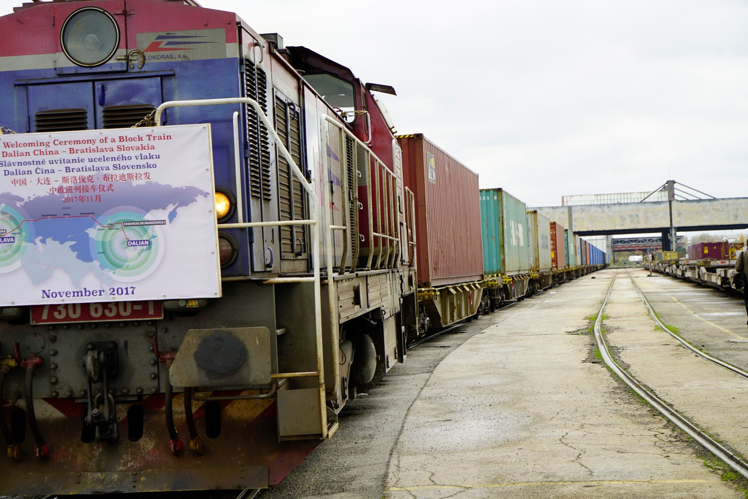 中國駐斯洛伐克大使林琳、斯洛伐克交通部部長阿帕德·艾塞克、斯洛伐克政府“一帶一路”全權(quán)談判代表丹娜·米格爾、中國交協(xié)亞歐大陸橋國際班列協(xié)調(diào)服務(wù)中心主任武靖宇、大連港集團(tuán)總經(jīng)理徐頌、中遠(yuǎn)海運(yùn)集裝箱運(yùn)輸有限公司副總經(jīng)理隋軍、貴州盤江物流集團(tuán)副總裁段國強(qiáng)等共同見證了班列抵達(dá)。