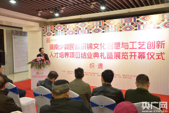 央廣網(wǎng)長(zhǎng)沙11月21日消息(記者鄧文輝)今天(21日),國(guó)家藝術(shù)基金“湖南少數(shù)民族織錦文化創(chuàng)意與工藝創(chuàng)新人才培養(yǎng)”項(xiàng)目匯報(bào)暨展覽開幕儀式在湖南省工藝美術(shù)館隆重舉行。現(xiàn)場(chǎng)展出來(lái)自四大民族織錦的省市州級(jí)傳承人、高校和研究所從事非遺研究和設(shè)計(jì)創(chuàng)作的老師的作品51套(共計(jì)96件),涉及包袋設(shè)計(jì)、服裝設(shè)計(jì)、家具設(shè)計(jì)、家居設(shè)計(jì)、軟裝設(shè)計(jì)、文創(chuàng)設(shè)計(jì)等多個(gè)領(lǐng)域。