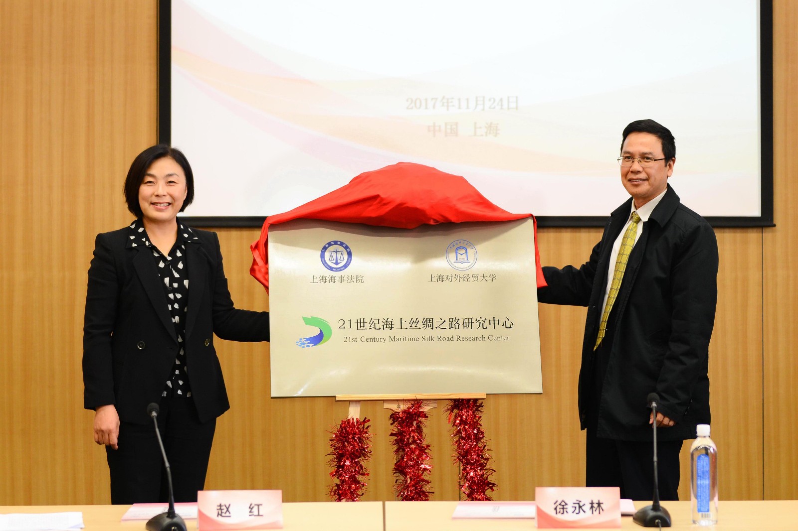 央廣網(wǎng)上海11月28日消息(記者周洪 通訊員 黃丹 姜彤)近日,上海海事法院與上海對外經(jīng)貿(mào)大學舉行 “21世紀海上絲綢之路研究中心”揭牌儀式。上海海事法院院長趙紅和上海對外經(jīng)貿(mào)大學副校長徐永林分別致辭,并代表兩家單位簽署了合作協(xié)議,共同為研究中心成立揭牌。