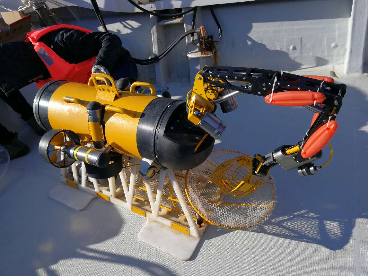 科研人員在船上一邊觀看著顯示器,一邊遙控機器人在水下行動。機器人身上自帶攝像頭,操作人員在顯示器上可以清晰的看到水下的情況。機器人來到了20多米深的海底,經(jīng)過一番尋找,機器人找了海參,通過操作者的遙控指揮,機器人將海參捕獲,并放入袋中。完成海參采捕任務(wù)后,水下智能機器人浮上海面,重新放回船上,試驗成功。