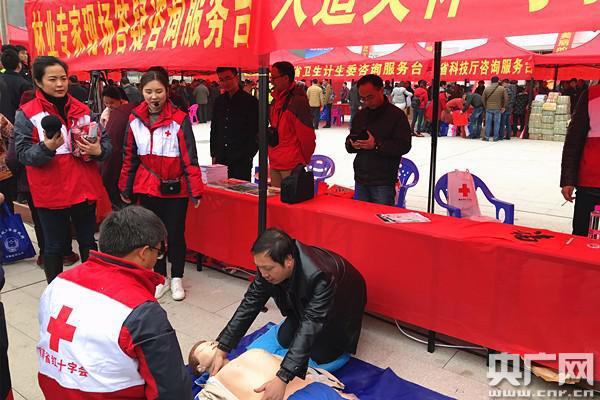 無人機(jī)展示、科技常識宣傳、為村民寫春聯(lián)、手把手教人工呼吸、演示如何正確使用滅火器材……當(dāng)天,永州市雙牌縣麻江鎮(zhèn)廖家村村級活動(dòng)中心人頭攢動(dòng),貼近民眾生活的科普貼畫、醫(yī)療義診、農(nóng)技展示等為當(dāng)?shù)卮迕袼蜕狭藴嘏按蠖Y包”,活動(dòng)現(xiàn)場熱鬧非凡。
