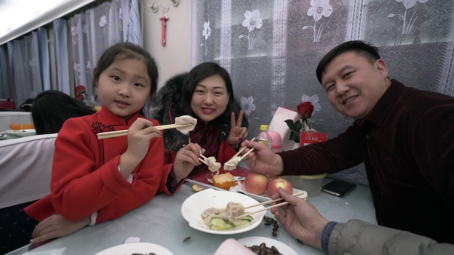 “春聯(lián)上寫了‘列車進入新時代’,我們的列車服務(wù)也有了新變化、新氣象,看這些精美的窗花、溫馨的車廂、整潔環(huán)境,都讓我對乘火車有了新的體驗,也感受到了不一樣的年味兒,回家路上,有他們相守,我是幸運的,真心為他們打call!”乘K1178次列車去北京換乘回沈陽探親的王振興一家三口對著鏡頭豎起了大拇指。