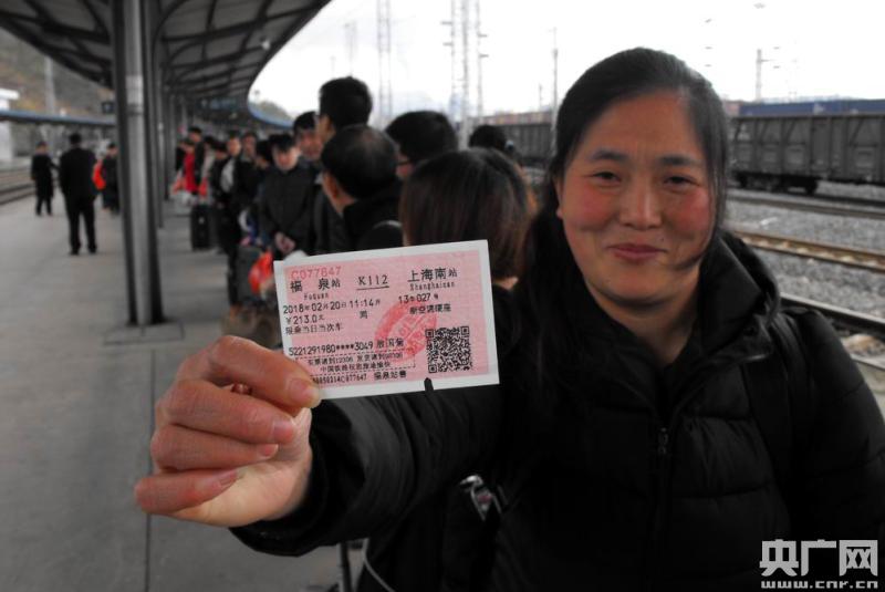 即將奔赴目的地的旅客愉快地展示著乘車的票(央廣網(wǎng)發(fā) 姜澤鵬攝)