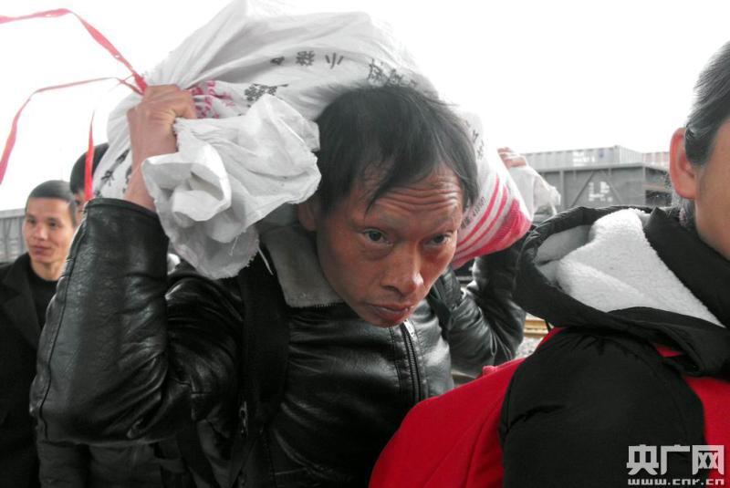 踏上返程返崗的民工兄弟(央廣網(wǎng)發(fā) 姜澤鵬攝)