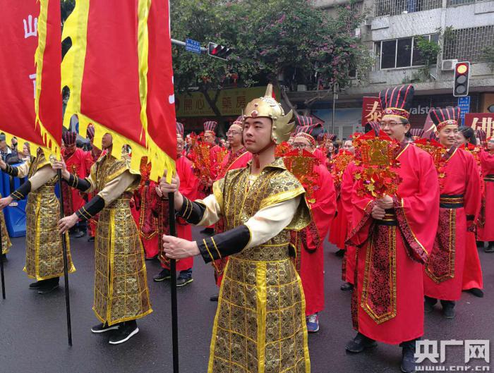 一大早,通濟(jì)橋附近熱鬧非凡,由兩千多人組成的12個(gè)巡游方陣依次排開(kāi),他們當(dāng)中既有佛山好人、大城工匠等知名人士,還有各界公益慈善力量、企業(yè)方陣、市民代表等。各個(gè)方陣內(nèi)涵豐富,嶺南醒獅、財(cái)神爺?shù)葌鹘y(tǒng)元素以及太極拳、扇子舞等大眾體育元素都包含其中,每個(gè)方陣由社會(huì)主義核心價(jià)值觀主題花燈引導(dǎo)。在行進(jìn)中,巡游隊(duì)伍還不時(shí)與沿路熱情的市民互動(dòng),將風(fēng)車與紅圍巾送給市民,互致新年祝福。