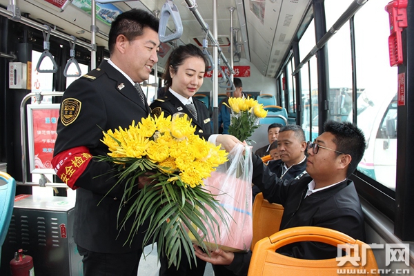 央廣網(wǎng)青島4月5日消息(記者王偉 通訊員陳愛(ài)潔)清明節(jié)小長(zhǎng)假,掃墓祭祀、進(jìn)山游玩的市民逐漸增多。節(jié)日期間,青島交運(yùn)溫馨巴士工作人員在617路、676等途經(jīng)殯儀館、百齡園等陵園的公交線路上向市民提供鮮花、綠植,兌換市民手中的香燭、紙錢、鞭炮,引導(dǎo)市民安全乘車、文明祭祀。