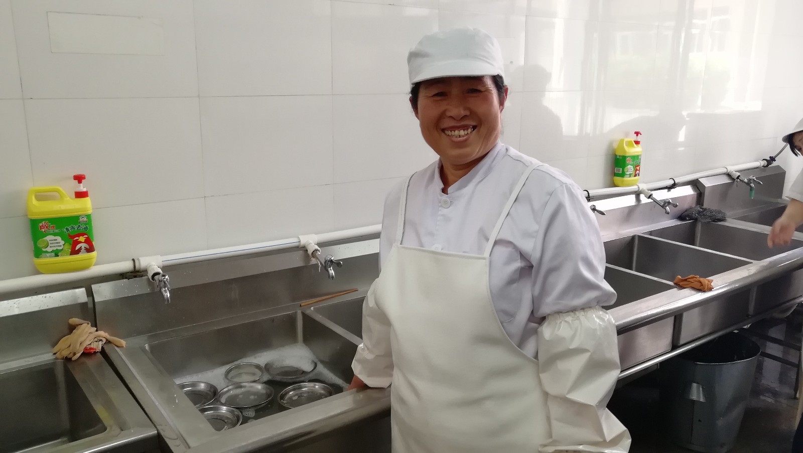 5月23日,記者來到大連民族大學(xué),見到了唐春英。唐阿姨今年55歲,老家在吉林四平農(nóng)村。2016年,她來到大連打工,在大連民族大學(xué)食堂做洗碗工作。她自己開玩笑地說,一晃來大連已經(jīng)三年了,再過一年就大學(xué)畢業(yè)了。樂觀、開朗、勤勞、樸實(shí)是唐阿姨給人的第一印象。