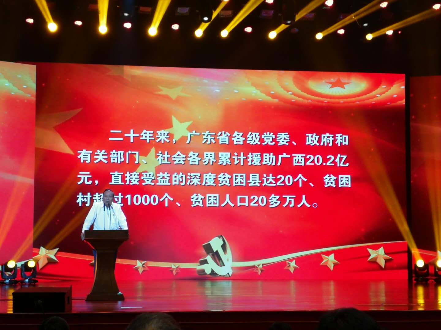 此外,二十年來,廣東省各級黨委、政府和有關(guān)部門、社會各界累計援助廣西20.2億元,直接受益的深度貧困縣達20個,貧困村超過1000個,貧困人口20多萬人。
