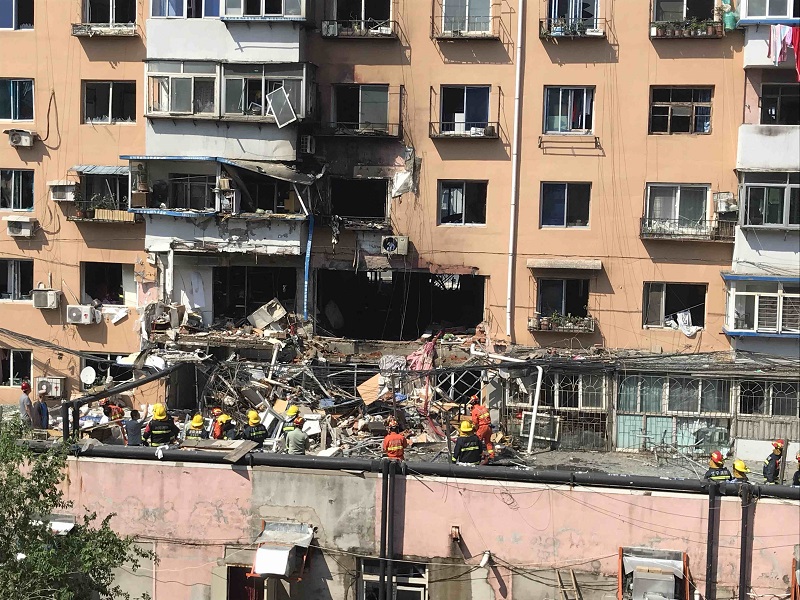 據(jù)沈陽(yáng)市有關(guān)部門通報(bào):2018年5月31日11時(shí)45分,消防沈陽(yáng)支隊(duì)指揮中心接到報(bào)警稱:位于皇姑區(qū)華山路33號(hào)發(fā)生火情,指揮中心立即調(diào)派消防官兵趕赴現(xiàn)場(chǎng),11時(shí)52分北陵中隊(duì)消防官兵到達(dá)現(xiàn)場(chǎng)開(kāi)展滅火救援工作,并第一時(shí)間通知120急救中心及煤氣公司趕赴現(xiàn)場(chǎng)組織救援。經(jīng)現(xiàn)場(chǎng)勘查,居民樓3單元四樓2號(hào)房間發(fā)生燃?xì)獗ǎ瑯巧衔鍢、樓下三樓墻體受損。爆炸引發(fā)著火,過(guò)火面積約300平方米,12時(shí)10分將明火撲滅。