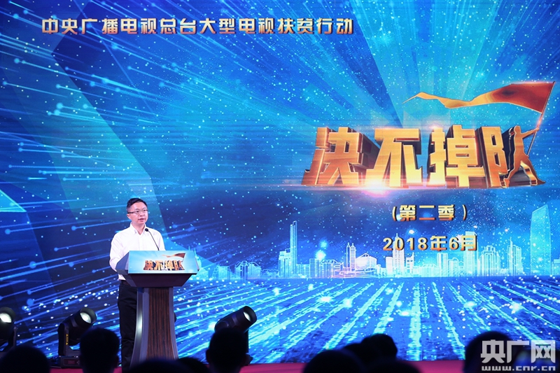 央廣網(wǎng)北京6月6日消息(記者 蔡波)2018年6月5日,中央廣播電視總臺大型電視扶貧行動《決不掉隊》第二季節(jié)目啟動儀式在北京梅地亞中心舉辦。中央組織部、中央宣傳部、中央統(tǒng)戰(zhàn)部、文化和旅游部、工信部、審計署、國務(wù)院扶貧辦、中國殘疾人聯(lián)合會和中華全國供銷合作總社等中央和國家機關(guān)有關(guān)部委領(lǐng)導,以及北京市扶貧協(xié)作和支援合作辦公室、重慶市萬州區(qū)、貴州省畢節(jié)市、西藏自治區(qū)墨脫縣、陜西省平利縣、甘肅省渭源縣、河北省淶源縣、云南省昭通市昭陽區(qū)、青海省囊謙縣、山東省棗莊市嶧城區(qū)、貴州省安順市西秀區(qū)等單位和地方領(lǐng)導,以及200多位專家、扶貧企業(yè)和主流媒體等參加節(jié)目啟動儀式。