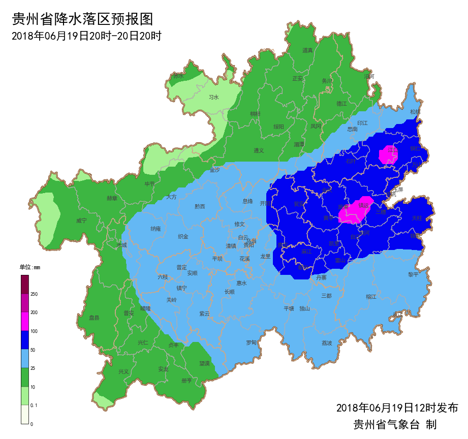 央廣網(wǎng)貴陽(yáng)6月19日消息(記者張兆福 貴州臺(tái)黃小勝)據(jù)貴州省氣象臺(tái)預(yù)報(bào),貴州今晚(19日)將迎來(lái)入汛以來(lái)影響范圍最廣、持續(xù)時(shí)間最長(zhǎng)的暴雨天氣過(guò)程。除遵義大部和畢節(jié)局部地區(qū)外,全省其余地區(qū)的降雨量普遍可達(dá)暴雨,部分地方可達(dá)大暴雨標(biāo)準(zhǔn)。降雨過(guò)程將持續(xù)到本周六(23日),預(yù)計(jì)累計(jì)雨量在100毫米以上,部分地方在200毫米以上,最大雨強(qiáng)為60~80毫米/小時(shí)。