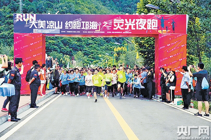 “大美涼山約跑邛!币枷娜諢岢 3700跑友熒光夜跑(央廣網(wǎng)發(fā) 涼山日報供圖)