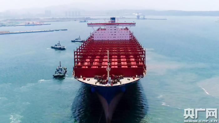 圖為世界上最大級別集裝箱船在大連交付(央廣網(wǎng)發(fā) 王鑫 攝)