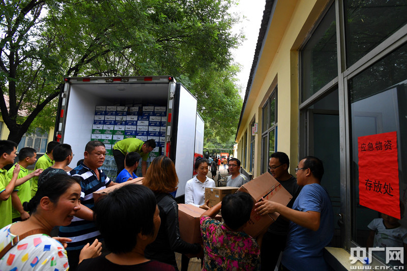 央廣網(wǎng)濰坊8月29日消息(記者劉華棟 王成林 唐磊)8月19日至20日,受臺風(fēng)“溫比亞”影響,山東壽光等地出現(xiàn)強(qiáng)降雨,從而引發(fā)嚴(yán)重洪澇災(zāi)害,大量房屋、農(nóng)田被淹。災(zāi)情發(fā)生后,各地消防官兵馳援壽光,愛心人士的救援物資也從四面八方匯聚到壽光。27日,青島一家愛心企業(yè)帶著滿滿一集裝箱的救援物資連夜趕到壽光,在今天將救援物資送到壽光兩處物資接收點(diǎn)。
