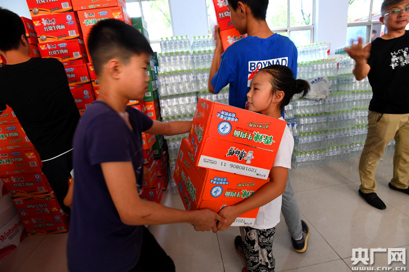 在搬運(yùn)過程中,記者注意到眾多志愿者中“藏著”幾個小小的身影,他們跟大人一樣忙里忙外,他們搬不動成箱的礦泉水,于是就選擇比較輕的方便面,等一車物資搬運(yùn)結(jié)束,他們的臉上也都布滿了汗珠。(央廣網(wǎng)發(fā) 通訊員劉延珉 攝)