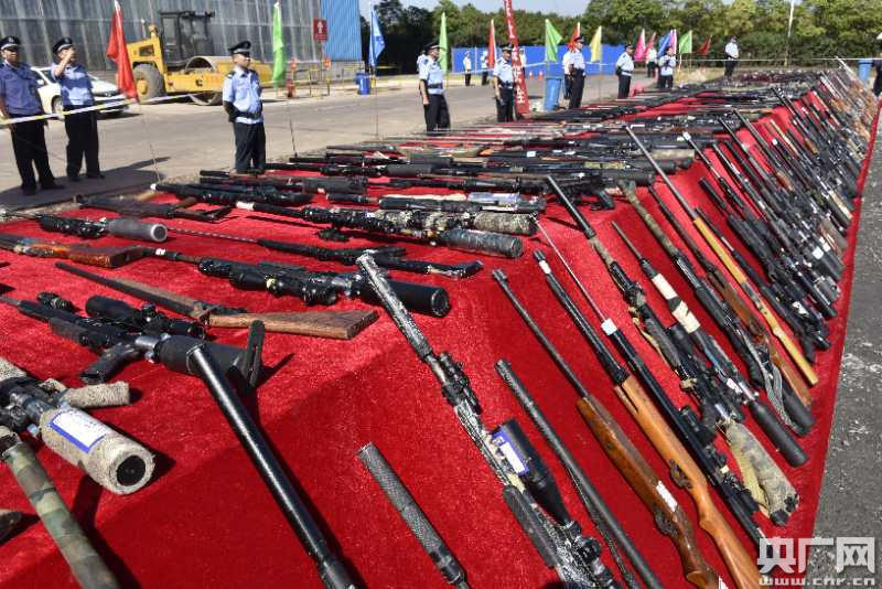 央廣網(wǎng)長沙9月20日消息(記者鄧文輝 通訊員李承 王森森)今天(20日)上午,湖南省公安廳在湖南華菱湘潭鋼鐵有限公司舉行全省打擊整治槍爆違法犯罪“百日會戰(zhàn)”動員部署暨集中銷槍行動,對全省公安機關(guān)2017年以來收繳的近2萬支非法槍支、1.1萬余把管制刀具進行集中銷毀。部署從即日起到今年年底在全省公安機關(guān)開展安保維穩(wěn)“百日會戰(zhàn)”,打擊整治槍爆違法犯罪、嚴管嚴控槍爆等危險物品。